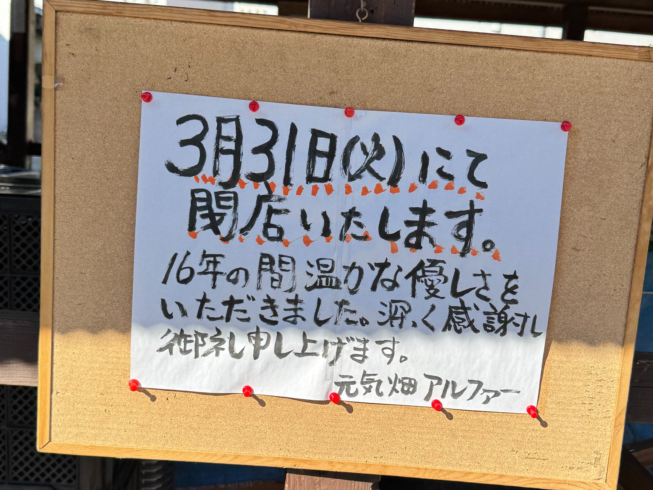 元気畑アルファー3月31日で閉店