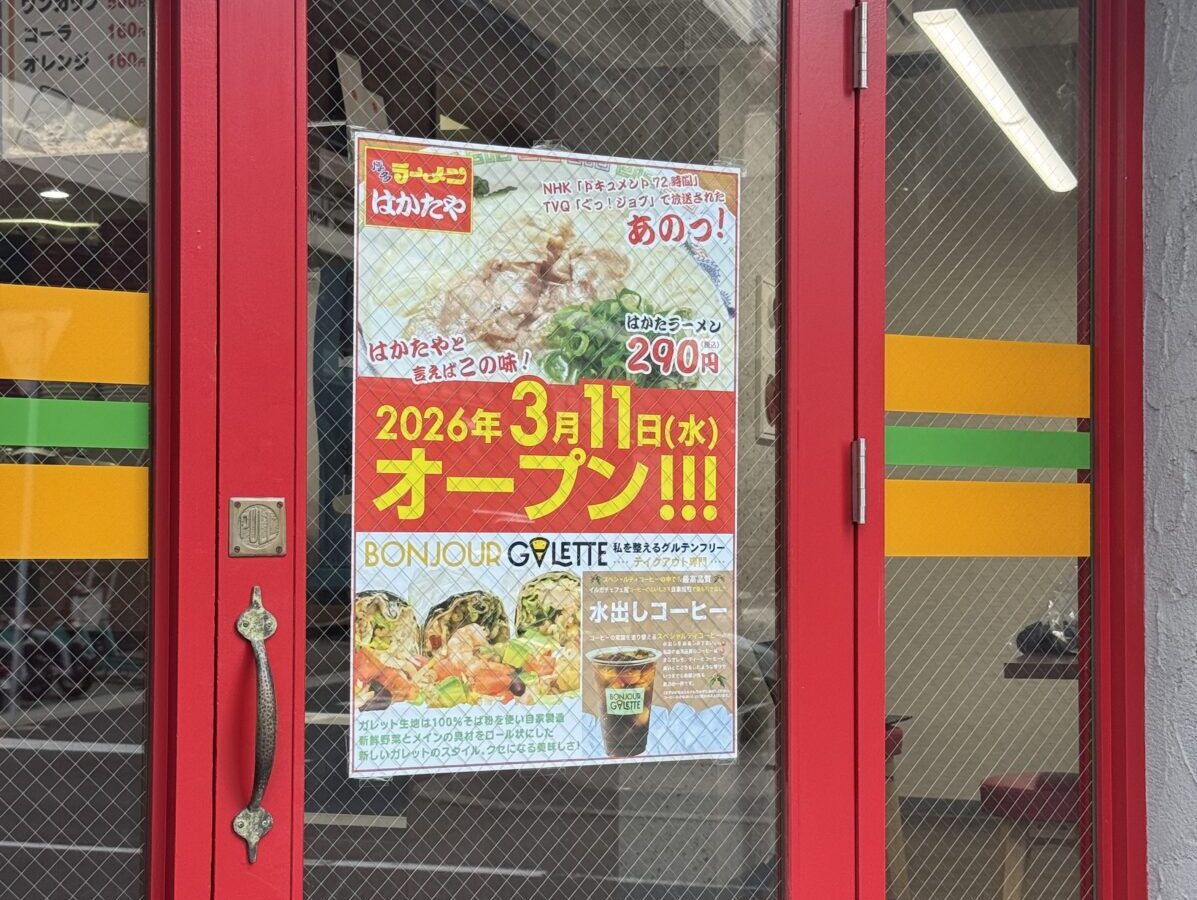 中央区薬院に「博多ラーメンはかたや」が2026年3月11日(水)にオープンします。この場所は元々、宮崎辛麺屋「辛福」の跡地です。