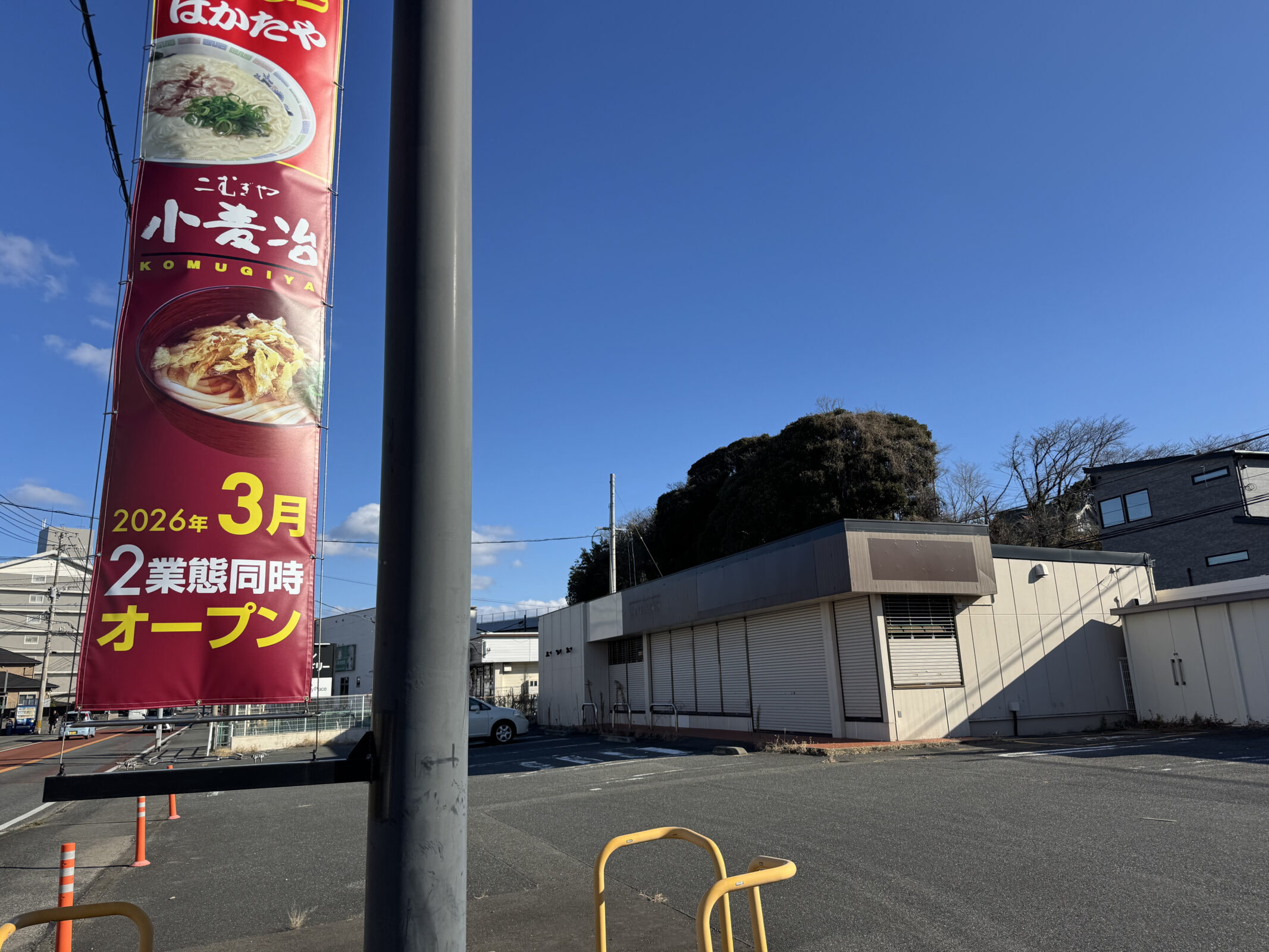 2026年3月、まつのや跡地に博多ラーメンはかたや、小麦治が同時オープンします。