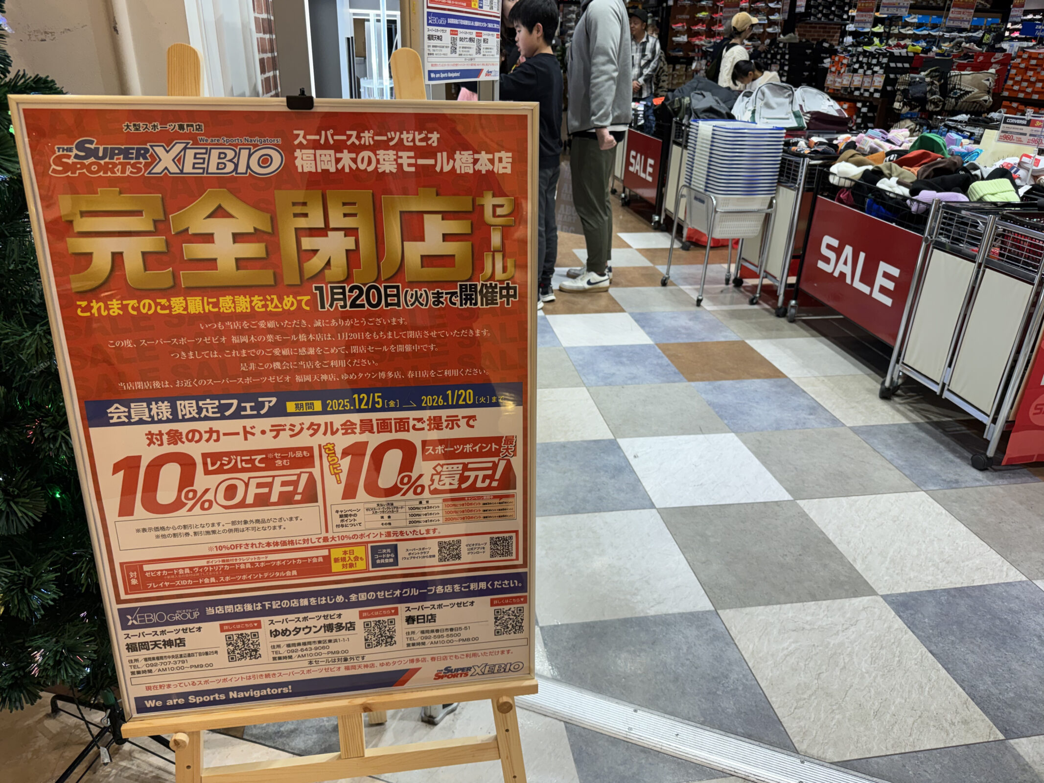 木の葉モール橋本にあるスポーツ用品店【スーパースポーツゼビオ木の葉モール橋本店】が2026年1月20日(火)に閉店することになりました。