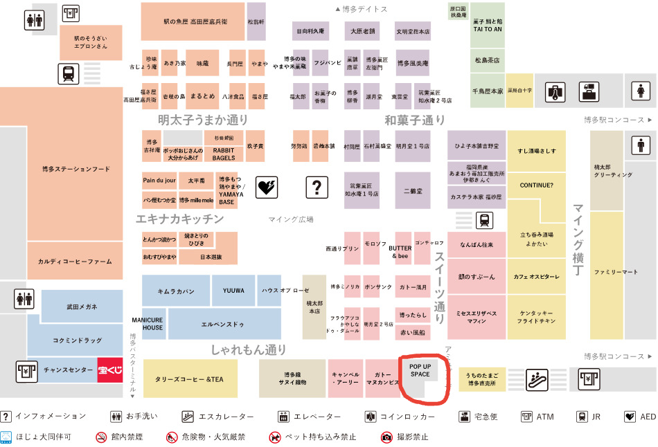 博多エキナカマイングは広くて、たくさんのお店が軒を連ねているので、マップで場所を確認しておくのがおすすめです。