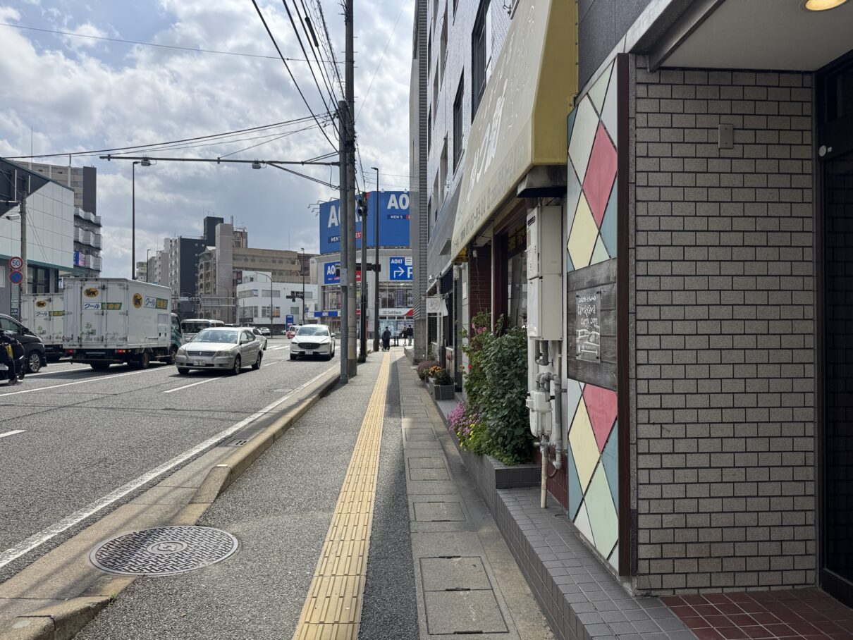 場所は、きよみ通りの北側で「清水四ツ角」交差点近くにあります。ビルの中の奥へ進んだところが店舗入口です。